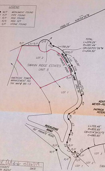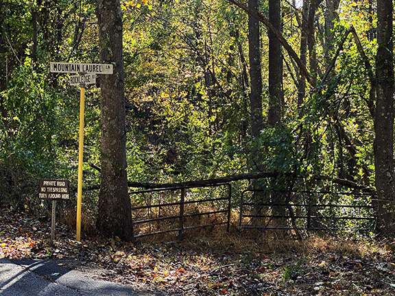 This isolated property is at the end of Mountain Laurel Road, a formal part of the Swann Ridge subdivision. It comes off of Mountain Spring Road, which is well maintained. Because multiple homes were planned along this road, an extremely sturdy road was built that runs for 1/3 mile. The properties have been consolidated so this is now the only parcel at the end of this road.